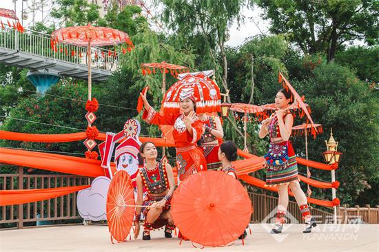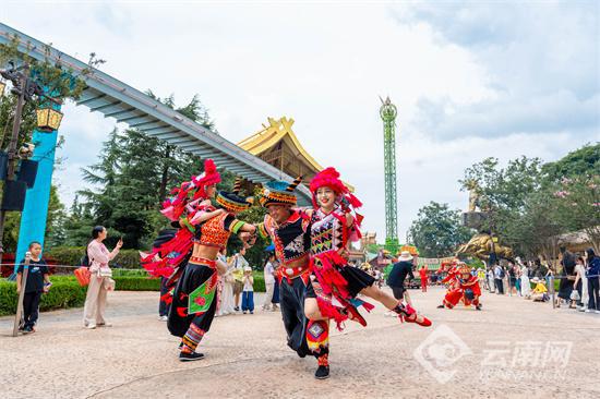 活动期间,除了民族风情浓郁的节目演出外,酣畅淋漓的泼水大战即将开启。游客们可手持水盆、水枪,在广场上肆意泼洒、水花四溅,欢声笑语回荡,驱散夏日燥热。火把节作为彝族、白族等多个民族的传统节日,承载着深厚的民俗文化内涵。为了让游客感受到原生态的民族多样风情,火把节将以水上演艺秀在七彩云南欢乐世界园内的昆明湖开场,以“月亮之上,彩云之下”为主题,由云南26个民族儿女联袂共舞,将火把节的传统元素与现代演艺形式完美结合。游客在欣赏精彩演出的同时,可以深入了解民族文化的博大精深。